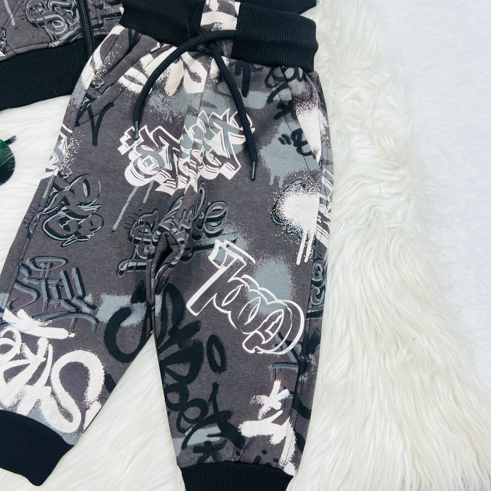 Grey Black Print Hoodie Trousers Fleece Stuff